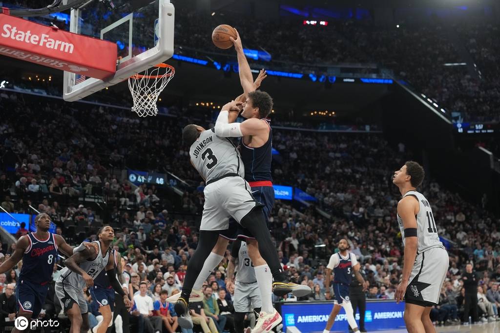开场后快船手感火热,琼斯、邓恩、洛佩斯连续命中远投,开局打出13-1的攻击波,建立两位数领先。马刺逐步调整进攻,尚帕尼、卡斯尔接连得分缩小差距,加兰连中三分帮助快船稳住领先优势。节末布莱恩特补篮得分,马刺带着8分落后进入节末休息。