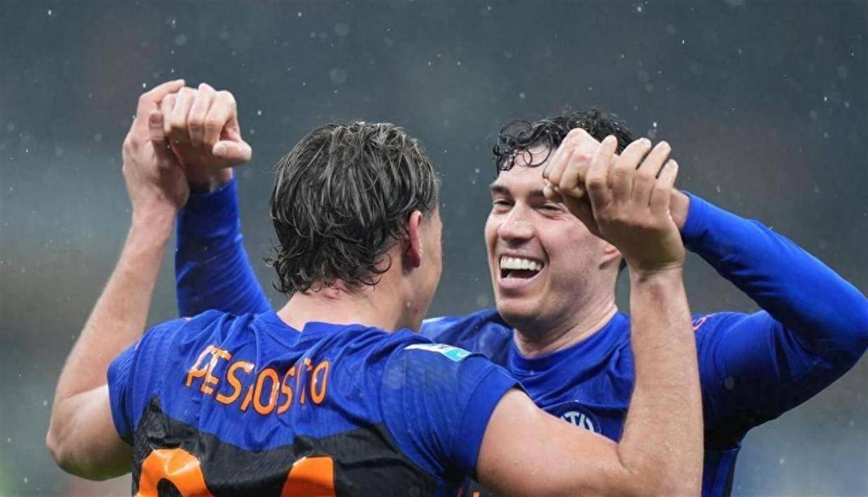 比赛的节奏已经完全倒向国米。 上半场补时阶段,反超的进球如期而至。 这次是右路的进攻,巴斯托尼送出一记传中,小将皮奥-埃斯波西托在点球点附近抢点,同样用一记头球,将球砸进了比萨的球门! 3-2! 不可思议! 国际米兰在半场结束前,完成了从地狱到天堂的逆转。 整个上半场,就像坐过山车一样刺激。